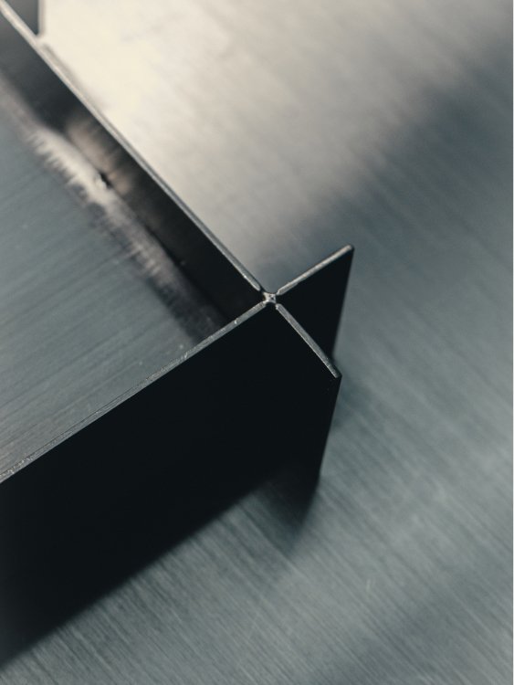 Contenedor ortogonal ensamblado en cruz en sus esquinas.