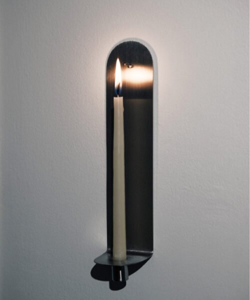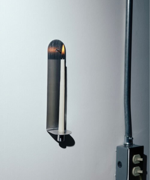 Lámina plegada que se proyecta desde el muro para sostener una vela.
