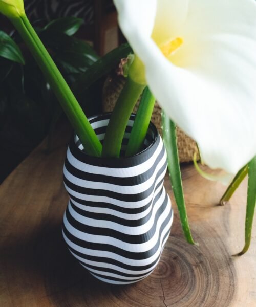 El florero Débora es impreso en 3D, en filamento biodegradable.