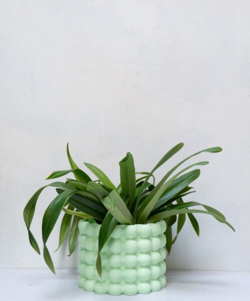 La Maceta Mora es impresa en 3D, en filamento biodegradable.