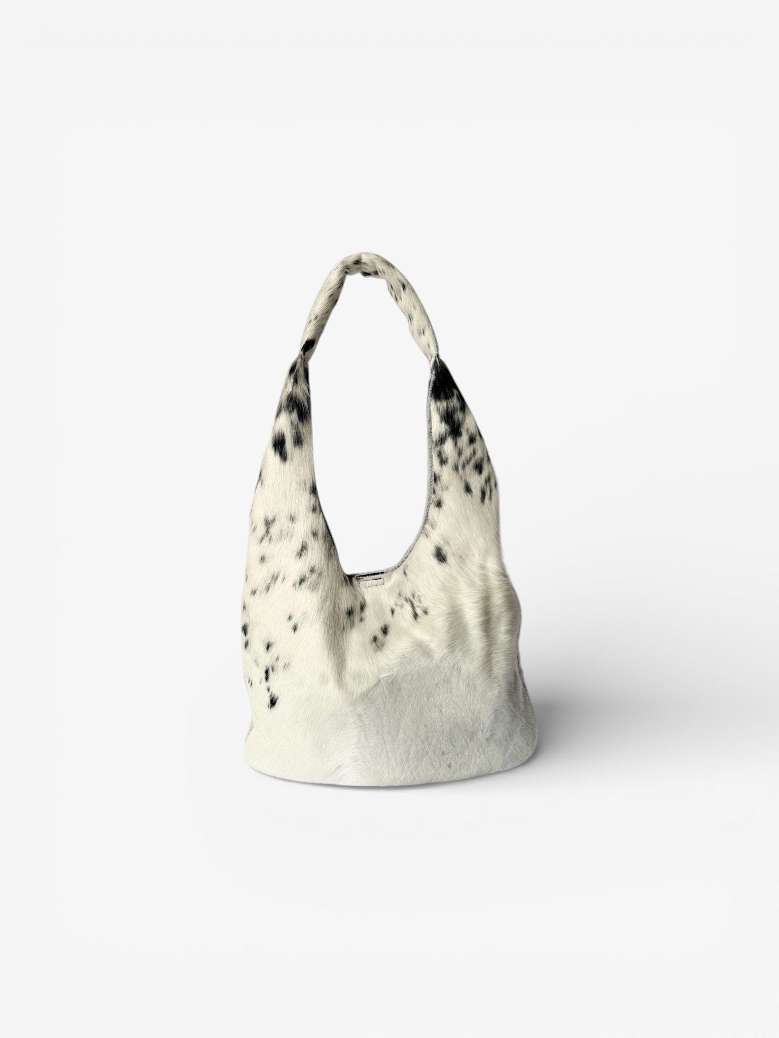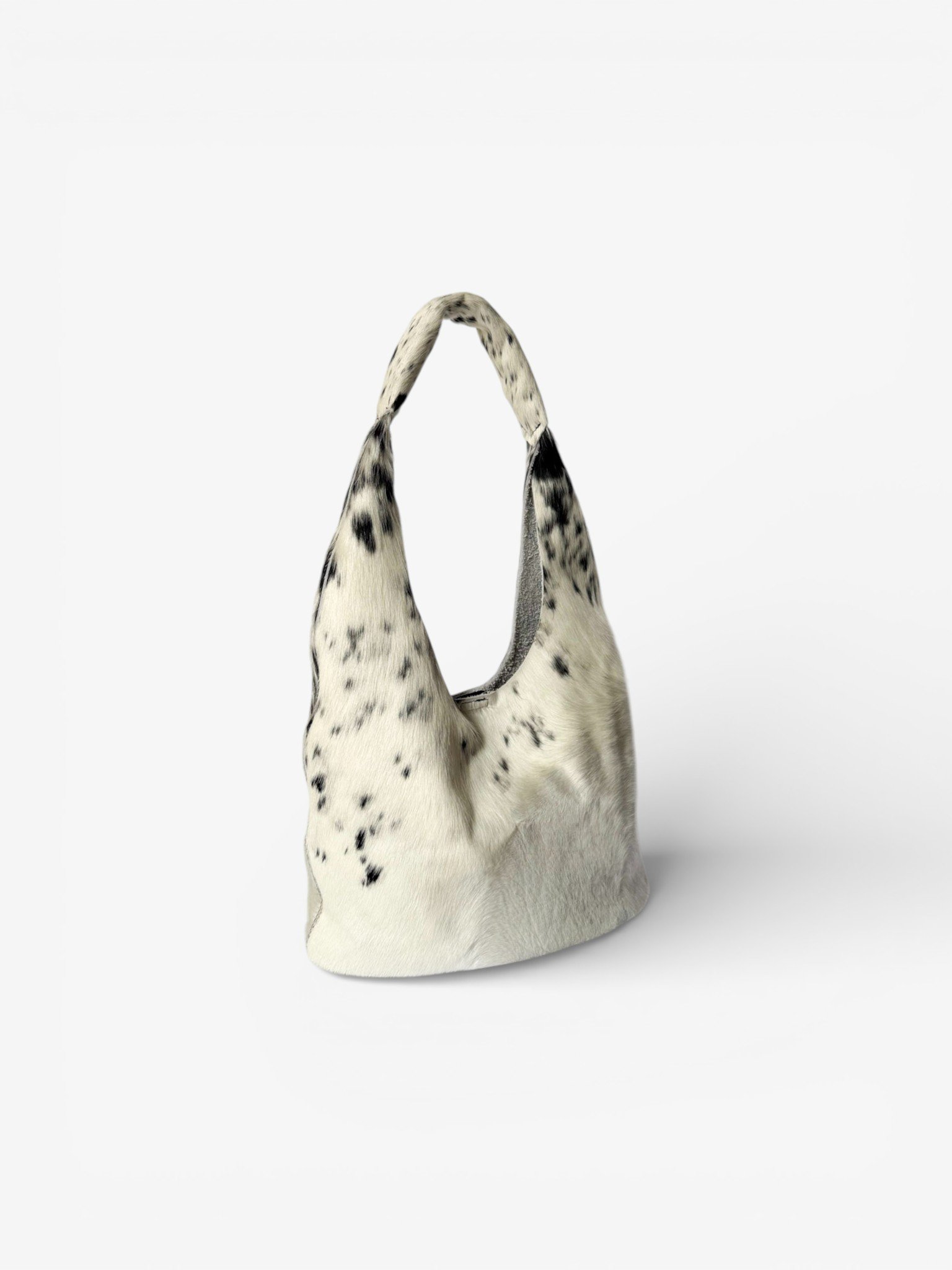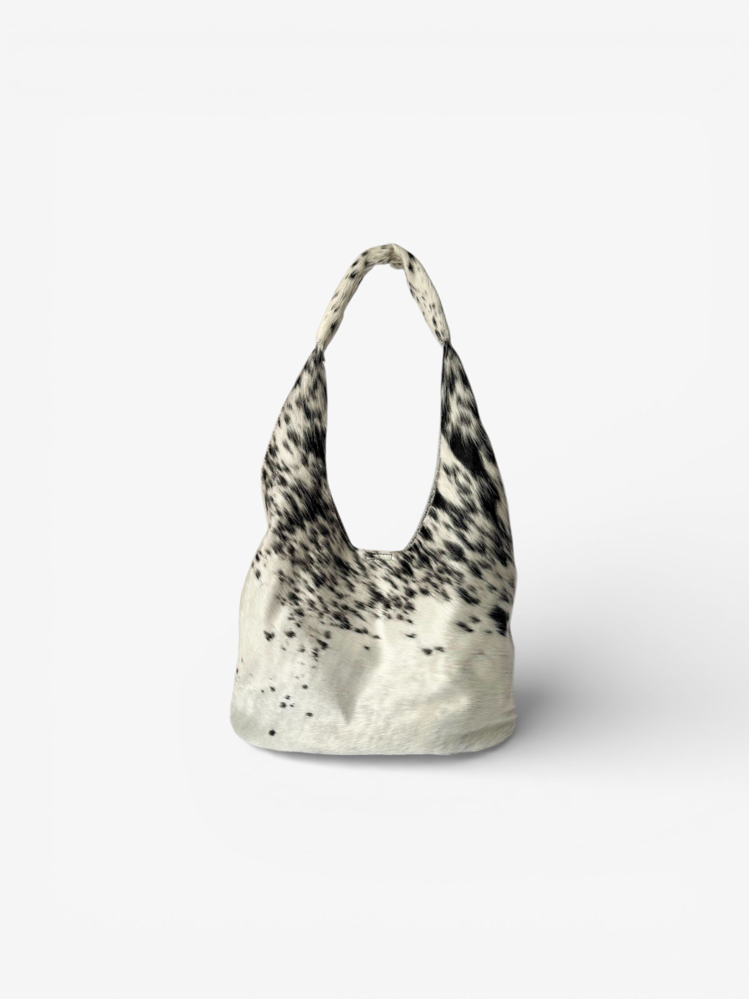 La cartera estrella es una declaración de estilo que no pasa desapercibida. Hecha con cuero pelo de vaca 100% colombiano, cada pieza es única, irrepetible y auténtica —con manchas naturales que pueden variar entre tonos grises o cafés, según la piel.