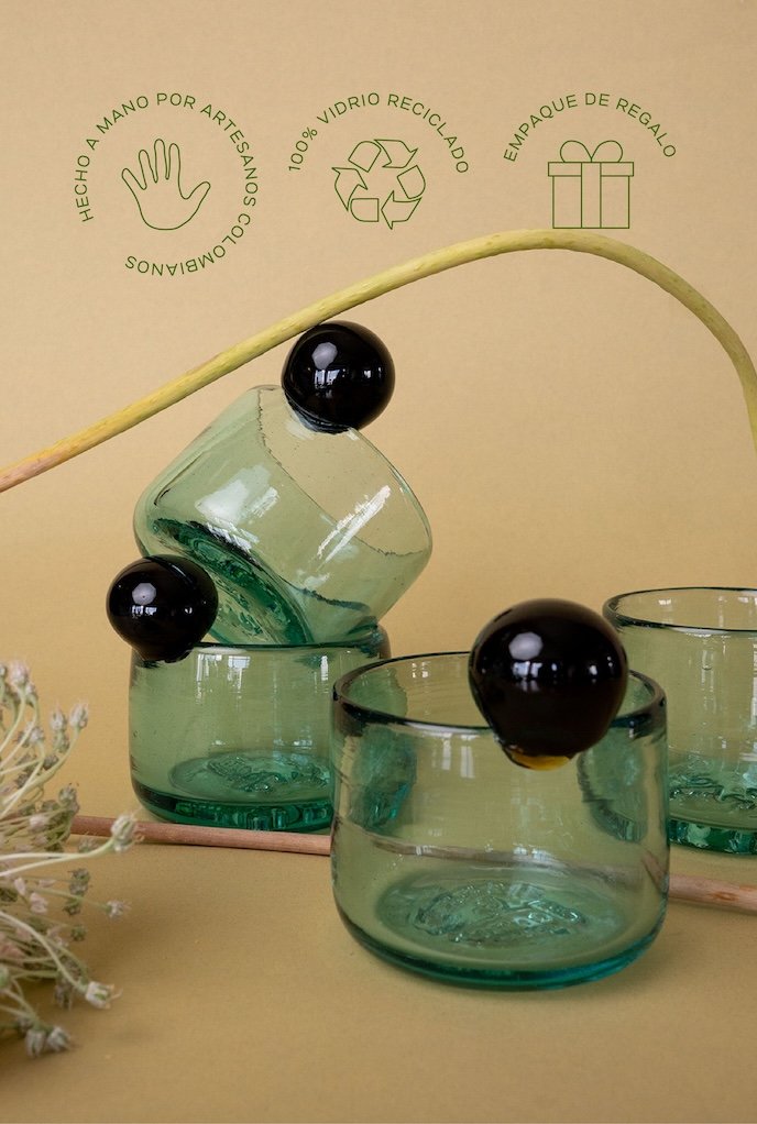 4 vasos en vidrio reciclado