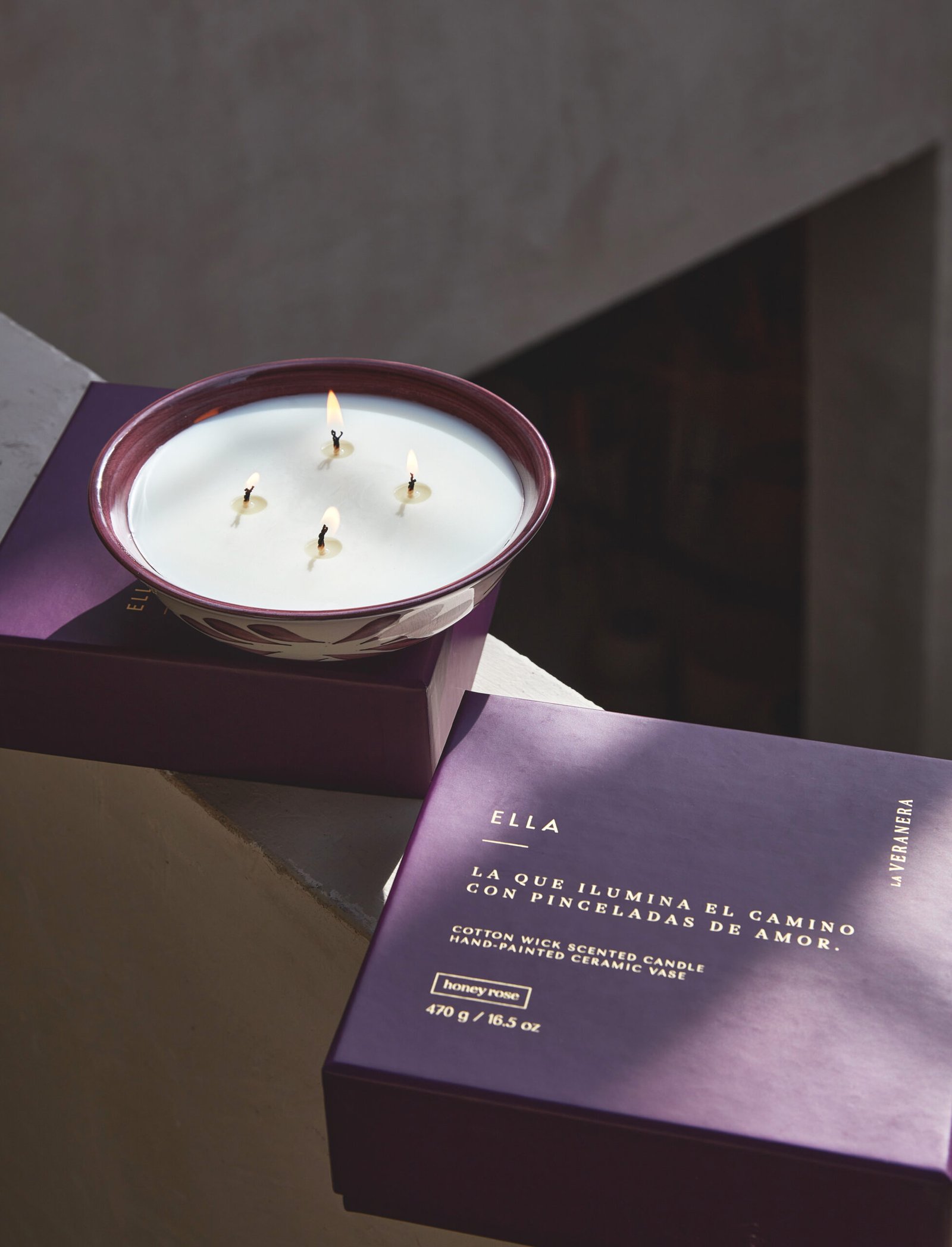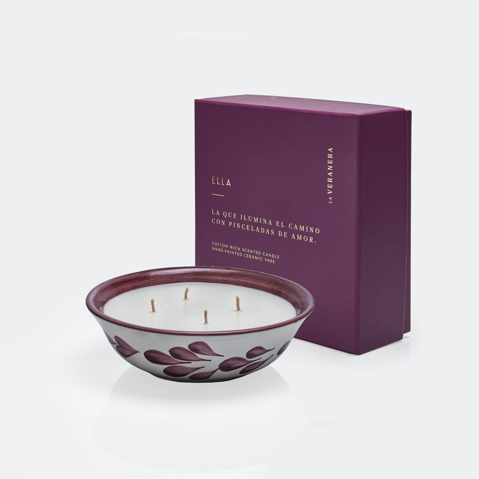 Vela edición ELLA de 4 pabilos de algodón. Hecha a mano en cerámica artesanal por los artesanos de Carmen de Viboral.