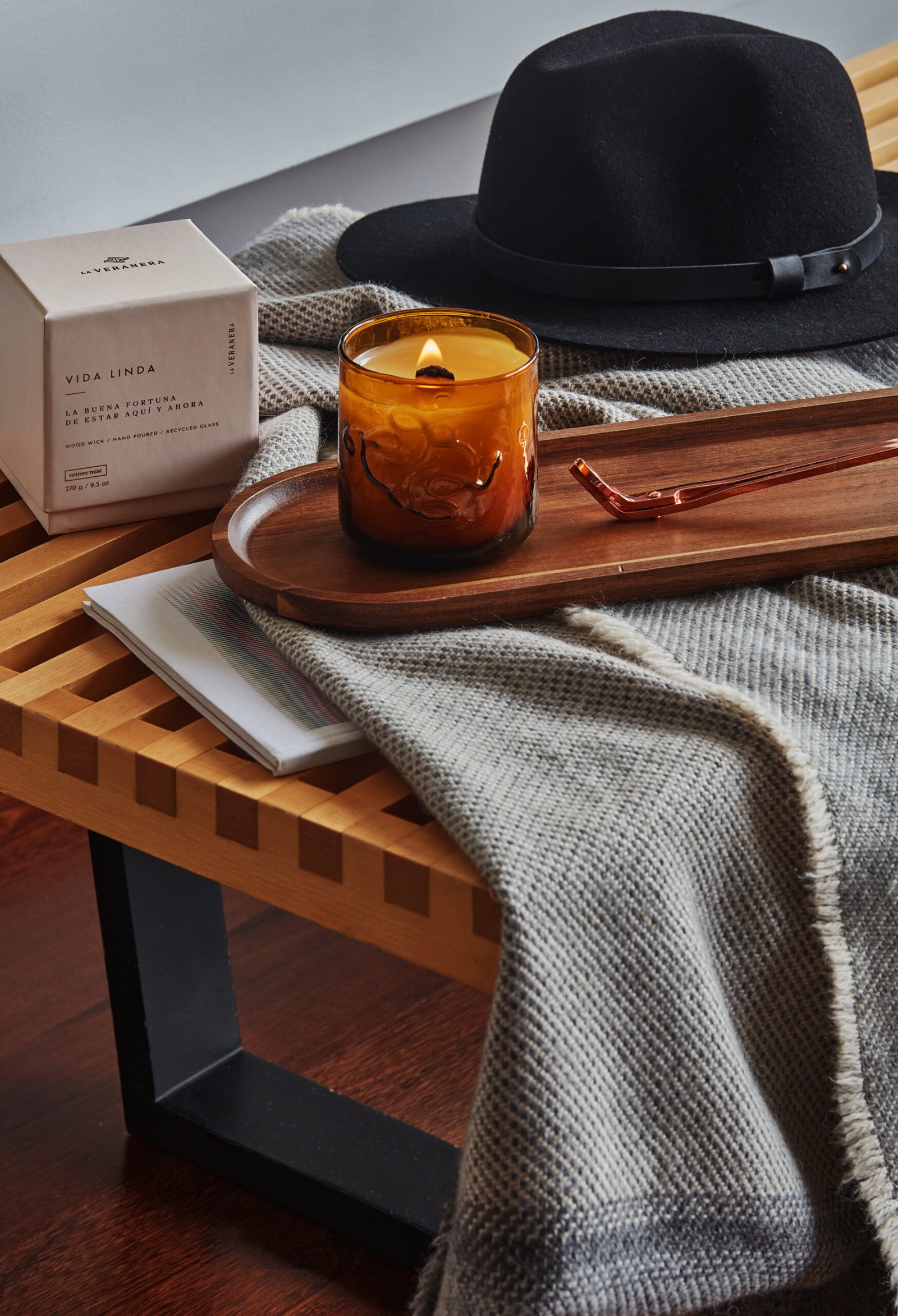 VETIVER MIST – Las notas amaderadas y terrosas de la raíz de vetiver se impregnan de la frescura de los cítricos, mientras la explosión y energía de las especias frescas se mezclan armoniosamente con la calma y tranquilidad que transmiten las notas aromáticas de lavanda.